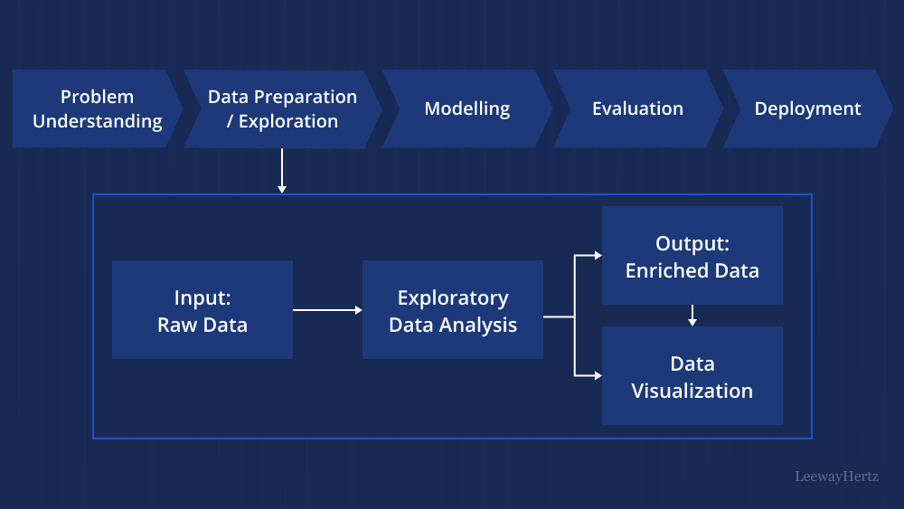 The EDA process is not a one-size-fits-all approach; it varies depending on the dataset and the questions being asked. However, a typical EDA process may involve the following steps: